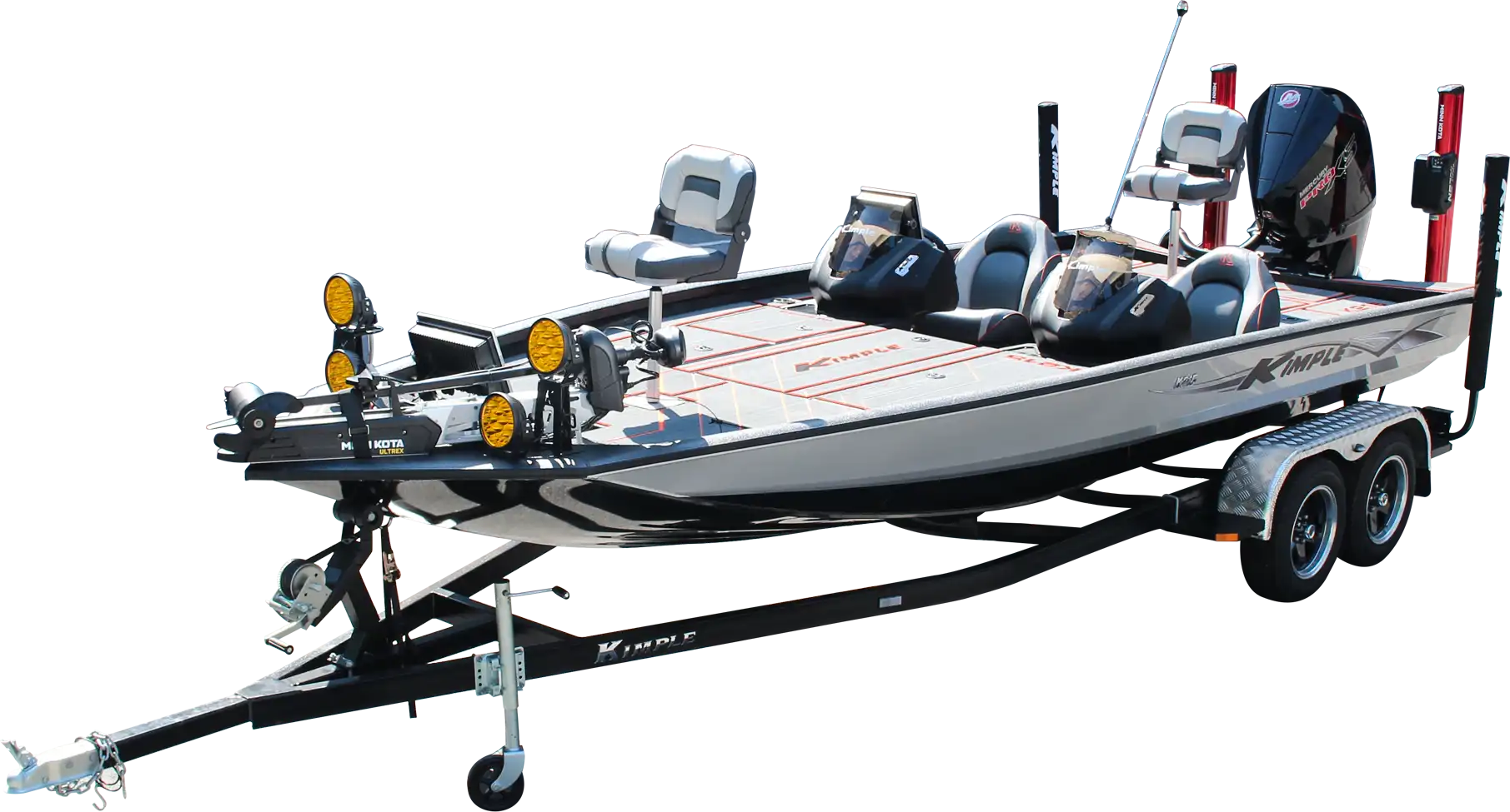 Onder de stoel bevindt zich een geïntegreerde 120 liter aluminium brandstoftank. Het dek is voorzien van US Mats beklede aluminium vloer en ruime castingplatforms voor en achter. De Kimple Kobra 215 is ontworpen voor vissers die maximale ruimte, vermogen en prestaties zoeken binnen de K-serie.