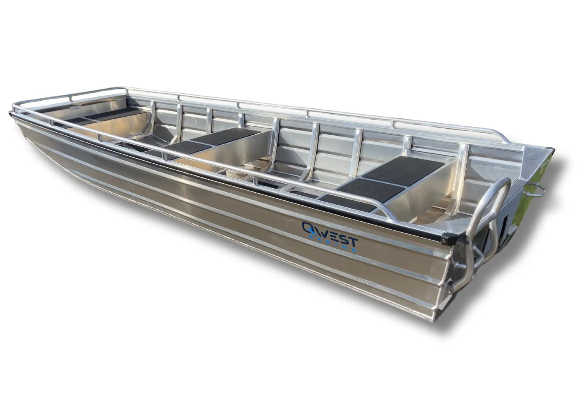 De QWEST F361 is een stabiele en onderhoudsarme aluminium platbodemboot met extra ruimte en draagvermogen. Geschikt voor meerdere personen en inzetbaar met een elektrische of kleine buitenboordmotor.