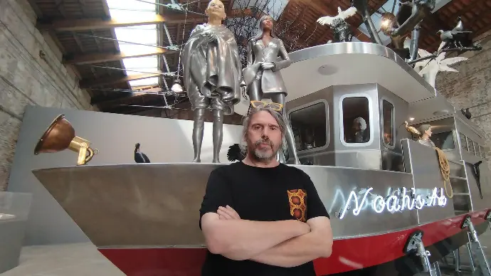 At the airport of Venice (Marco Polo), Vanmechelen presents ‘Noah’s Ark’, a contemporary interpretation of the iconic Venetian water bus — the Vaporetto — transformed into a floating gallery. This vessel, carrying a microcosm of our world, serves as a call to reimagine our world. It reflects the human condition and urges us to navigate the turbulent waters of our existence with awareness, responsibility, and hope.